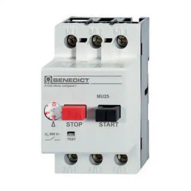 This is manufactured by Benedict GmbH. The manufacturer part number is MU25-10. The product is available in din rail configuration. It is assigned with possible HTSUS value of 8536.50.4000. The product is rohs3 compliant. The product mu25, is a highly preferred choice for users. It is shipped in box. Additionally, the product's output is 10a It is a type of manual motor starter breaker. It is approved by ce, culus. The product carries push-push actuator. Is this product illuminated? none. It has equipped with 3 poles. The product exhibits 690 v of AC voltage rating.