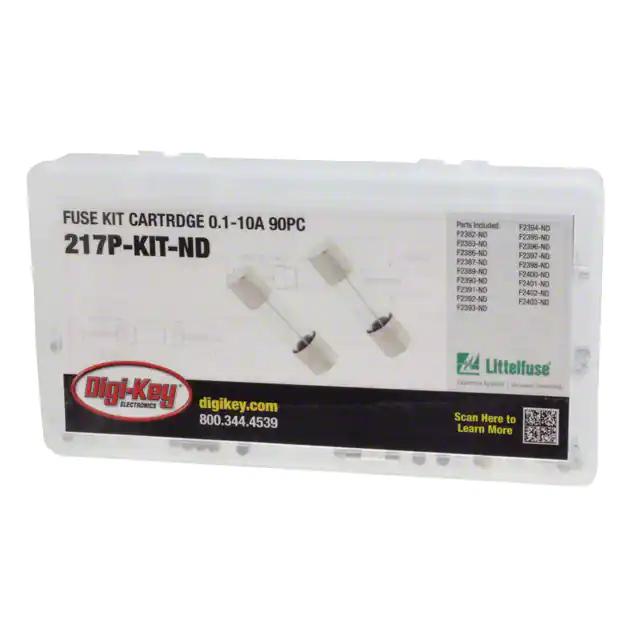 This is manufactured by Littelfuse Inc.. The manufacturer part number is 217P-KIT. It is assigned with possible HTSUS value of 8536.10.0020. The product is rohs3 compliant. Moreover, the product has a nominal 250vac voltage rating. It responds within fast blow. It is shipped in case. Its typical moisture sensitivity level is 1 (unlimited). Additionally, the product's output is 0.1 ~ 10a Available in 90 pieces (18 values - 5 each) quantity. The cartridge, glass is designed to provide robust applications in a variety of specific settings. The product is available in holder configuration. The product 217, is a highly preferred choice for users. The product is designated with the ear99 code number