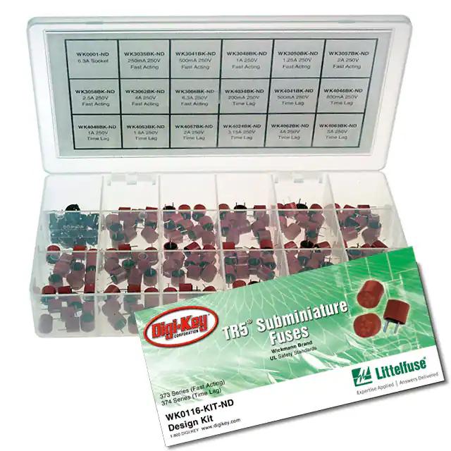 This is manufactured by Littelfuse Inc.. The manufacturer part number is WK0116-KIT. It is assigned with possible HTSUS value of 8536.10.0040. The product is rohs3 compliant. Moreover, the product has a nominal 250vac voltage rating. The product is also supplied with fuseholders. It responds within fast blow, slow blow. It is shipped in case. Its typical moisture sensitivity level is 1 (unlimited). Additionally, the product's output is 0.2 ~ 6.3a Available in 170 pieces (17 values - 10 each) quantity. The board mount is designed to provide robust applications in a variety of specific settings. The product is available in through hole configuration. The product tr5® ul, is a highly preferred choice for users. The product is designated with the ear99 code number