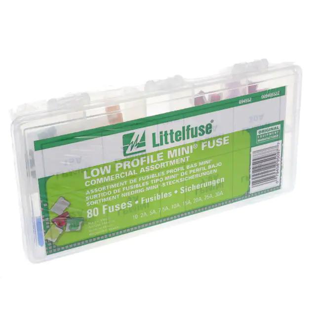 This is manufactured by Littelfuse Inc.. The manufacturer part number is 00940552Z. It is assigned with possible HTSUS value of 8536.10.0040. The product is rohs3 compliant. Moreover, the product has a nominal 32vac, 32vdc voltage rating. In addition, it is reach unaffected. It responds within fast blow. It is shipped in box. Its typical moisture sensitivity level is 1 (unlimited). It has a long 12 weeks standard lead time. Additionally, the product's output is 3 ~ 30a Available in 80 pieces (8 values - 10 each) quantity. The automotive is designed to provide robust applications in a variety of specific settings. The product is available in holder configuration. The product lp mini® 891, is a highly preferred choice for users. The product is designated with the ear99 code number