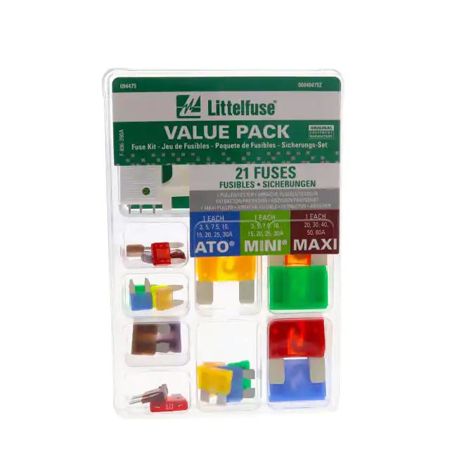 This is manufactured by Littelfuse Inc.. The manufacturer part number is 00940475Z. It is assigned with possible HTSUS value of 8536.10.0040. The product is rohs3 compliant. In addition, it is reach unaffected. It responds within fast blow, slow blow. It is shipped in retail package. Its typical moisture sensitivity level is not applicable. It has a long 10 weeks standard lead time. Available in 21 pieces (assorted per value) quantity. The automotive is designed to provide robust applications in a variety of specific settings. The product is available in holder configuration. The product is designated with the ear99 code number