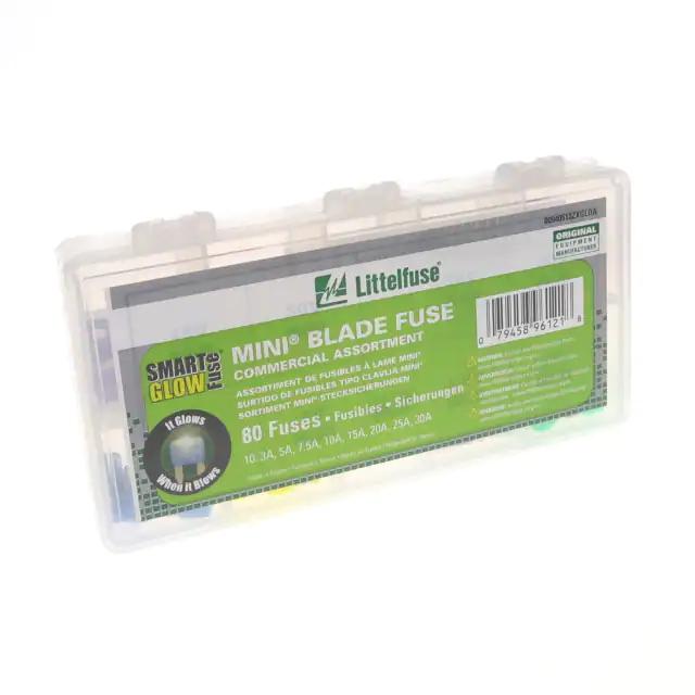 This is manufactured by Littelfuse Inc.. The manufacturer part number is 00940510ZXGLOA. It is assigned with possible HTSUS value of 8536.10.0040. The product is rohs3 compliant. Moreover, the product has a nominal 32vac, 32vdc voltage rating. In addition, it is reach unaffected. It responds within fast blow. It is shipped in case. Its typical moisture sensitivity level is 1 (unlimited). It has a long 10 weeks standard lead time. Additionally, the product's output is 3 ~ 30a Available in 80 pieces (8 values - 10 each) quantity. The automotive is designed to provide robust applications in a variety of specific settings. The product is available in holder configuration. The product mini®, is a highly preferred choice for users. The product is designated with the ear99 code number