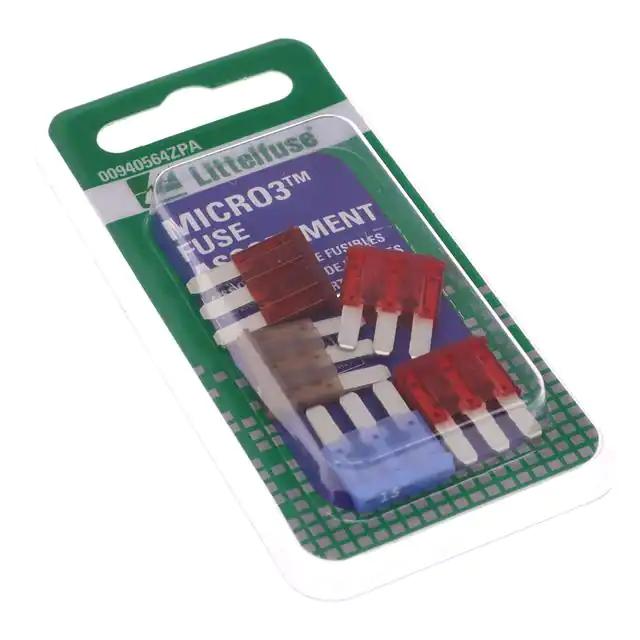 This is manufactured by Littelfuse Inc.. The manufacturer part number is 00940564ZPA. It is assigned with possible HTSUS value of 8536.10.0040. The product is rohs3 compliant. Moreover, the product has a nominal 32vdc voltage rating. In addition, it is reach unaffected. It is shipped in retail package. Its typical moisture sensitivity level is 1 (unlimited). It has a long 10 weeks standard lead time. Additionally, the product's output is 5 ~ 15a Available in 5 pieces (5 values - 1 each) quantity. The automotive is designed to provide robust applications in a variety of specific settings. The product is available in holder configuration. The product micro3™, is a highly preferred choice for users. The product is designated with the ear99 code number