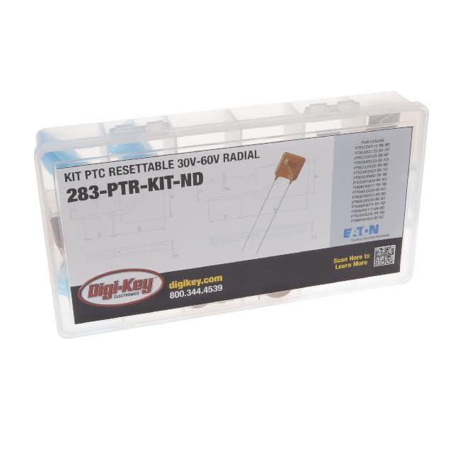 This is manufactured by Eaton - Electronics Division. The manufacturer part number is 283-PTR-KIT. The ptc resettable is designed to provide robust applications in a variety of specific settings. The product is available in through hole configuration. It is assigned with possible HTSUS value of 8533.40.8070. It is shipped in case. Moreover, the product has a nominal 30vdc, 60vdc voltage rating. Its typical moisture sensitivity level is 1 (unlimited). Available in 80 pieces (16 values - 5 each) quantity. The product is designated with the ear99 code number