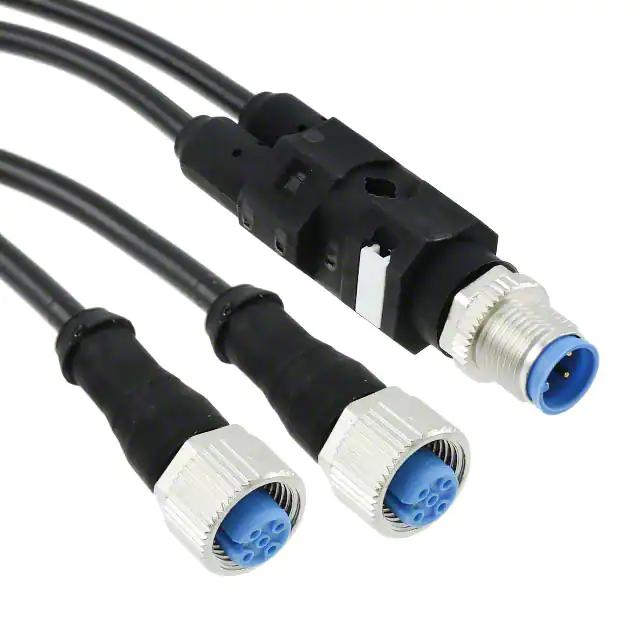 This is manufactured by TE Connectivity AMP Connectors. The manufacturer part number is 1-2273107-4. This connector has a a orientation. The second integral connector has a free hanging (in-line) mounting configuration. It is assigned with possible HTSUS value of 8544.42.9090. The product is rohs compliant. The cable is constructed from highly durable polyvinyl chloride (pvc) materials. Furthermore, the product is shielded with unshielded. While the loaded positions on first connector are all. The size of the first connector's shell - insert is m12. In addition, it is vendor undefined. The second connector is the plug. The product is designed in a y-adapter on one end assembly configuration. The number of positions on the second connector are 4. It is shipped in box. Its typical moisture sensitivity level is 1 (unlimited). Its accurate length is 4.92' (1.50m). The first connectors are female sockets. It has a long 35 weeks standard lead time. receptacle (2) is the first connector. The shell size of the second connector is m12. The first connector contains 3 positions. It has a classic black colour. The product m12, is a highly preferred choice for users. In addition, second connectors are available in a orientation. It is a typical round - split cable. While the loaded positions on the second connector are all. Second connectors come as male pins. The first connector is configured with a free hanging (in-line) mounting type. Moreover, it corresponds to 2273107, a base product number of the product. The product is designated with the ear99 code number