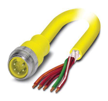 This is manufactured by Phoenix Contact. The manufacturer part number is 1532797. It is a type of cable & connector accessory. Furthermore, the cable has a 4m of length. This connector has a a orientation. It is assigned with possible HTSUS value of 8544.42.9090. The product is rohs compliant. The cable is constructed from highly durable polyvinyl chloride (pvc) materials. The product's typical Applications include uses in industrial environments. Furthermore, the product is shielded with unshielded. While the loaded positions on first connector are all. The size of the first connector's shell - insert is 7/8". The second connector is the wire leads. The product is designed in a standard assembly configuration. It is shipped in bulk. Its typical moisture sensitivity level is 1 (unlimited). Its accurate length is 13.12' (4.00m). It is IP rated with ip65/ip67/ip68 - dust tight, water resistant, waterproof. receptacle is the first connector. The first connector contains 5 positions. The first connectors are male pins. It has a classic yellow colour. It is a typical round cable. The first connector is configured with a free hanging (in-line) mounting type. The product is designated with the ear99 code number