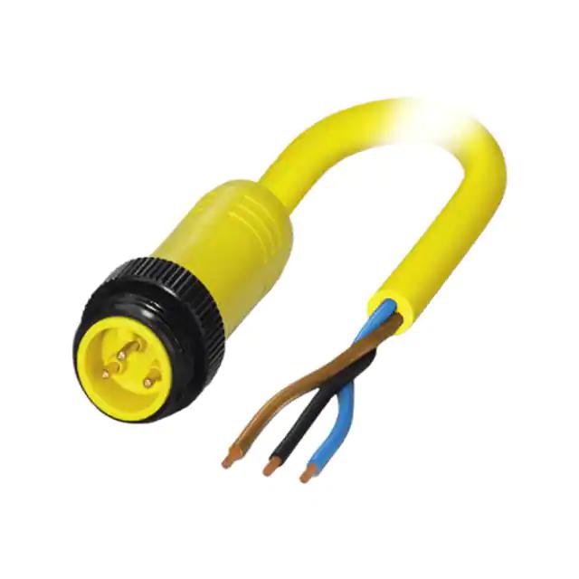 This is manufactured by Phoenix Contact. The manufacturer part number is 1416573. This connector has a a orientation. It is assigned with possible HTSUS value of 8544.42.9090. The product is rohs3 compliant. The cable is constructed from highly durable polyvinyl chloride (pvc) materials. The product's typical Applications include uses in industrial environments. Furthermore, the product is shielded with unshielded. While the loaded positions on first connector are all. The size of the first connector's shell - insert is 7/8". In addition, it is reach unaffected. The second connector is the wire leads. The product is designed in a standard assembly configuration. It is shipped in bulk. Its typical moisture sensitivity level is not applicable. Its accurate length is 16.40' (5.00m). The first connectors are male pins. It has a long 21 weeks standard lead time. plug is the first connector. The first connector contains 3 positions. It is IP rated with ip68 - dust tight, waterproof. It has a classic yellow colour. It is a typical round cable. The first connector is configured with a free hanging (in-line) mounting type. The product is designated with the ear99 code number