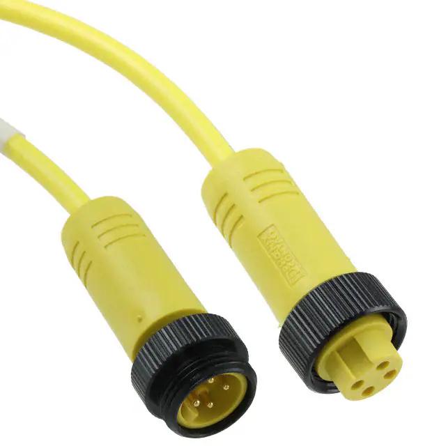 This is manufactured by Phoenix Contact. The manufacturer part number is 1416626. This connector has a a orientation. The second integral connector has a free hanging (in-line) mounting configuration. It is assigned with possible HTSUS value of 8544.42.9090. The product is rohs3 compliant. The cable is constructed from highly durable polyvinyl chloride (pvc) materials. The product's typical Applications include uses in industrial environments. Furthermore, the product is shielded with unshielded. While the loaded positions on first connector are all. The size of the first connector's shell - insert is 7/8". In addition, it is reach unaffected. The second connector is the plug. The product is designed in a standard assembly configuration. The number of positions on the second connector are 4. It is shipped in bulk. Its typical moisture sensitivity level is not applicable. Its accurate length is 16.40' (5.00m). The first connectors are male pins. It has a long 21 weeks standard lead time. receptacle is the first connector. The shell size of the second connector is 7/8". The first connector contains 4 positions. It is IP rated with ip68 - dust tight, waterproof. It has a classic yellow colour. In addition, second connectors are available in a orientation. It is a typical round cable. While the loaded positions on the second connector are all. Second connectors come as female sockets. The first connector is configured with a free hanging (in-line) mounting type. The product is designated with the ear99 code number