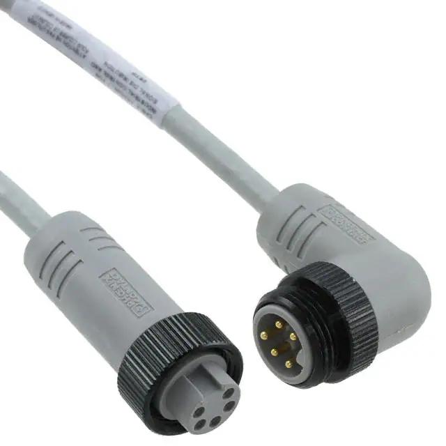 This is manufactured by Phoenix Contact. The manufacturer part number is 1416686. This connector has a a orientation. The second integral connector has a free hanging (in-line) mounting configuration. It is assigned with possible HTSUS value of 8544.42.9090. The product is rohs compliant. The cable is constructed from highly durable polyvinyl chloride (pvc) materials. The product's typical Applications include uses in industrial environments. Furthermore, the product is shielded with shielded. While the loaded positions on first connector are all. The size of the first connector's shell - insert is 7/8". The second connector is the plug. The product is designed in a standard assembly configuration. The number of positions on the second connector are 5. It is shipped in bulk. Its typical moisture sensitivity level is not applicable. Its accurate length is 6.56' (2.00m). The first connectors are male pins. It has a long 23 weeks standard lead time. receptacle, right angle is the first connector. The shell size of the second connector is 7/8". The first connector contains 5 positions. It is IP rated with ip68 - dust tight, waterproof. It has a classic gray colour. In addition, second connectors are available in a orientation. It is a typical round cable. While the loaded positions on the second connector are all. Second connectors come as female sockets. The first connector is configured with a free hanging (in-line) mounting type. The product is designated with the ear99 code number