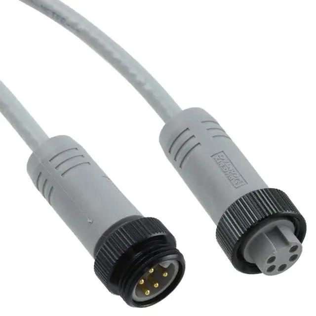 This is manufactured by Phoenix Contact. The manufacturer part number is 1416963. This connector has a a orientation. The second integral connector has a free hanging (in-line) mounting configuration. It is assigned with possible HTSUS value of 8544.42.9090. The product is rohs compliant. The cable is constructed from highly durable polyvinyl chloride (pvc) materials. The product's typical Applications include uses in industrial environments. Furthermore, the product is shielded with shielded. While the loaded positions on first connector are all. The size of the first connector's shell - insert is 7/8". The second connector is the plug. The product is designed in a standard assembly configuration. The number of positions on the second connector are 5. It is shipped in bulk. Its typical moisture sensitivity level is not applicable. Its accurate length is 49.2' (15.00m). The first connectors are male pins. It has a long 23 weeks standard lead time. receptacle is the first connector. The shell size of the second connector is 7/8". The first connector contains 5 positions. It is IP rated with ip68 - dust tight, waterproof. It has a classic gray colour. In addition, second connectors are available in a orientation. It is a typical round cable. While the loaded positions on the second connector are all. Second connectors come as female sockets. The first connector is configured with a free hanging (in-line) mounting type. The product is designated with the ear99 code number