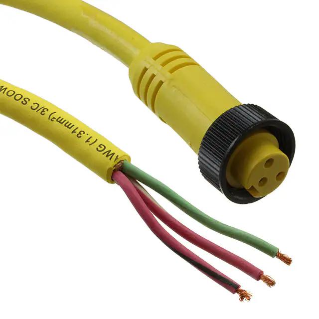 This is manufactured by Molex. The manufacturer part number is 1300060374. This connector has a keyed orientation. It is assigned with possible HTSUS value of 8544.42.9090. The cable is constructed from highly durable polyvinyl chloride (pvc) materials. The product's typical Applications include uses in industrial environments. Furthermore, the product is shielded with unshielded. While the loaded positions on first connector are all. The second connector is the wire leads. The product is designed in a standard assembly configuration. It is shipped in bulk. Its typical moisture sensitivity level is not applicable. Its accurate length is 3.00' (914.40mm). It is IP rated with ip67 - dust tight, waterproof. It has a long 7 weeks standard lead time. plug is the first connector. The first connector contains 3 positions. The first connectors are female sockets. It has a classic yellow colour. The product brad mini-change 130006, is a highly preferred choice for users. It is a typical round cable. The first connector is configured with a free hanging (in-line) mounting type. Moreover, it corresponds to 130006, a base product number of the product. The product is designated with the ear99 code number