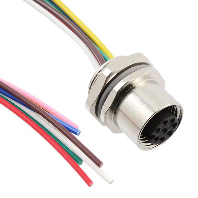 This is manufactured by TE Connectivity AMP Connectors. The manufacturer part number is T4171320008-001. This connector has a a orientation. It is assigned with possible HTSUS value of 8544.42.9090. The product is rohs compliant. The product's typical Applications include uses in industrial environments. Furthermore, the product is shielded with unshielded. While the loaded positions on first connector are all. The size of the first connector's shell - insert is m12. In addition, it is reach affected. The second connector is the wire leads. The product is designed in a standard assembly configuration. It is shipped in bag. Its typical moisture sensitivity level is not applicable. Its accurate length is 0.66' (200.00mm). The first connectors are female sockets. It has a long 18 weeks standard lead time. plug is the first connector. The first connector contains 8 positions. It is IP rated with ip67 - dust tight, waterproof. It has a classic multiple colour. The product m12, is a highly preferred choice for users. It is a typical individual cable. The first connector is configured with a panel mount mounting type. Moreover, it corresponds to t41713, a base product number of the product. The product is designated with the ear99 code number