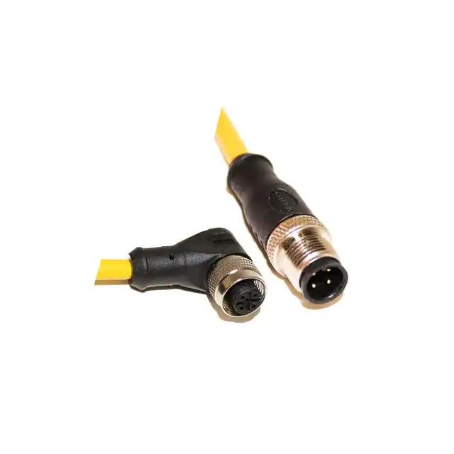This is manufactured by Mueller Electric Co. The manufacturer part number is C4AD05M005. This connector has a a orientation. The second integral connector has a free hanging (in-line) mounting configuration. It is assigned with possible HTSUS value of 8544.42.9090. The product is rohs compliant. The product's typical Applications include uses in industrial environments. Furthermore, the product is shielded with shielded. While the loaded positions on first connector are all. The size of the first connector's shell - insert is m12. In addition, it is reach unaffected. The second connector is the plug, right angle. The product is designed in a standard assembly configuration. The number of positions on the second connector are 4. It is shipped in bag. Its typical moisture sensitivity level is 1 (unlimited). Its accurate length is 16.40' (5.00m). The first connectors are male pins. It has a long 3 weeks standard lead time. receptacle is the first connector. The shell size of the second connector is m12. The first connector contains 4 positions. It is IP rated with ip68 - dust tight, waterproof. It has a classic yellow colour. In addition, second connectors are available in a orientation. It is a typical round cable. While the loaded positions on the second connector are all. Second connectors come as female sockets. The first connector is configured with a free hanging (in-line) mounting type. The product is designated with the ear99 code number