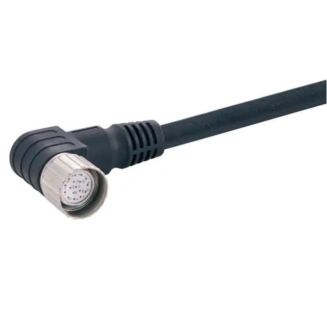 This is manufactured by HARTING. The manufacturer part number is 21373600F72050. This connector has a keyed orientation. It is assigned with possible HTSUS value of 8544.42.9090. The product is rohs3 compliant. The cable is constructed from highly durable polyurethane (pur) materials. The product's typical Applications include uses in industrial environments. Furthermore, the product is shielded with unshielded. While the loaded positions on first connector are all. The size of the first connector's shell - insert is m23. In addition, it is reach unaffected. The second connector is the wire leads. The product is designed in a standard assembly configuration. It is shipped in bulk. Its typical moisture sensitivity level is 1 (unlimited). Its accurate length is 16.40' (5.00m). The first connectors are female sockets. It has a long 14 weeks standard lead time. plug, right angle is the first connector. The first connector contains 17 positions. It is IP rated with ip67 - dust tight, waterproof. It has a classic black colour. The product m23 signal, is a highly preferred choice for users. It is a typical round cable. The first connector is configured with a free hanging (in-line) mounting type. The product is designated with the ear99 code number