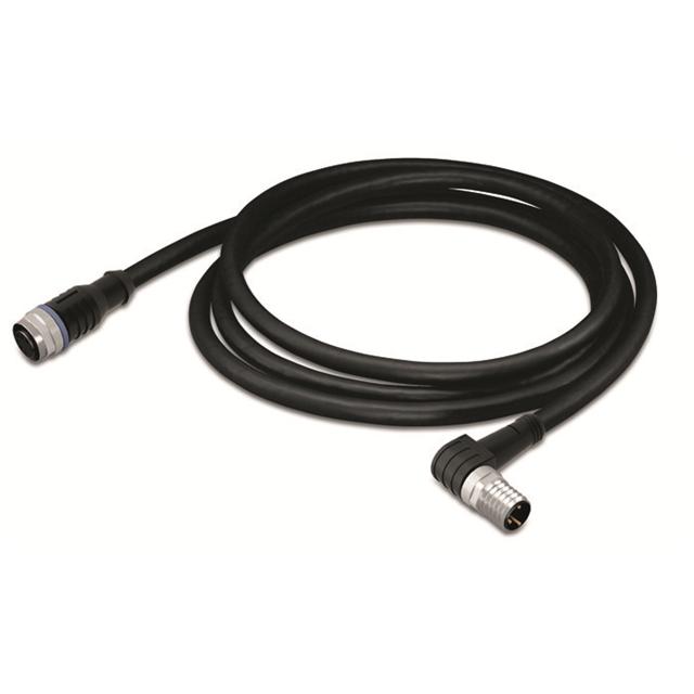 This is manufactured by WAGO Corporation. The manufacturer part number is 756-5502/030-010. This connector has a a orientation. The second integral connector has a free hanging (in-line) mounting configuration. It is assigned with possible HTSUS value of 8544.42.9090. The product is rohs3 compliant. The cable is constructed from highly durable polyurethane (pur) materials. The product's typical Applications include uses in industrial environments. Furthermore, the product is shielded with unshielded. While the loaded positions on first connector are all. The size of the first connector's shell - insert is m8. The second connector is the plug. The product is designed in a standard assembly configuration. The number of positions on the second connector are 3. It is shipped in box. Its typical moisture sensitivity level is not applicable. Its accurate length is 3.28' (1.00m). The first connectors are male pins. It has a long 12 weeks standard lead time. receptacle, right angle is the first connector. The shell size of the second connector is m12. The first connector contains 3 positions. It is IP rated with ip67 - dust tight, waterproof. It has a classic black colour. It is a typical round cable. While the loaded positions on the second connector are all. Second connectors come as female sockets. The first connector is configured with a free hanging (in-line) mounting type. The product is designated with the ear99 code number