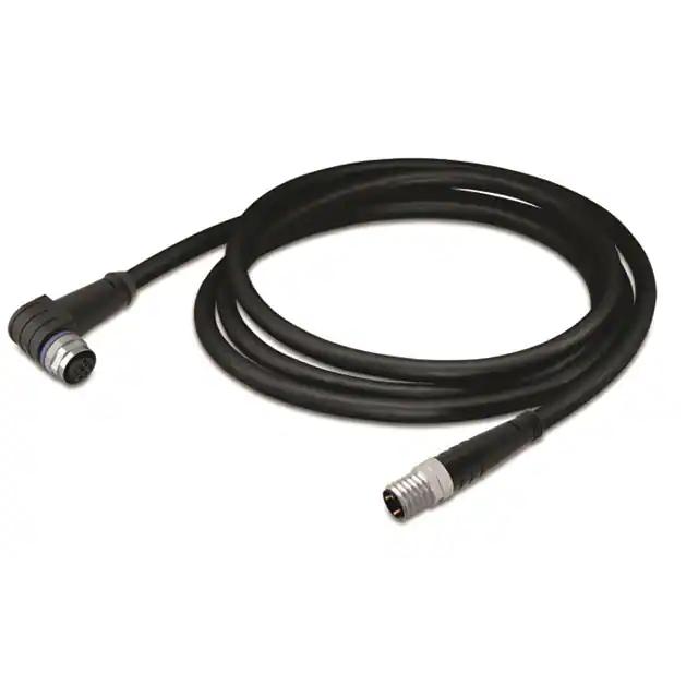 This is manufactured by WAGO Corporation. The manufacturer part number is 756-5503/030-010. This connector has a a orientation. The second integral connector has a free hanging (in-line) mounting configuration. It is assigned with possible HTSUS value of 8544.42.9090. The product is rohs3 compliant. The cable is constructed from highly durable polyurethane (pur) materials. The product's typical Applications include uses in industrial environments. Furthermore, the product is shielded with unshielded. While the loaded positions on first connector are all. The size of the first connector's shell - insert is m8. The second connector is the plug, right angle. The product is designed in a standard assembly configuration. The number of positions on the second connector are 3. It is shipped in box. Its typical moisture sensitivity level is not applicable. Its accurate length is 3.28' (1.00m). The first connectors are male pins. It has a long 12 weeks standard lead time. receptacle is the first connector. The shell size of the second connector is m12. The first connector contains 3 positions. It is IP rated with ip67 - dust tight, waterproof. It has a classic black colour. It is a typical round cable. While the loaded positions on the second connector are all. Second connectors come as female sockets. The first connector is configured with a free hanging (in-line) mounting type. The product is designated with the ear99 code number