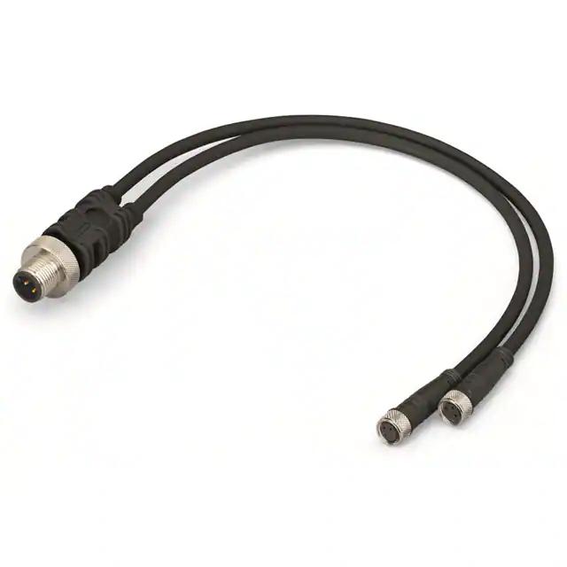 This is manufactured by WAGO Corporation. The manufacturer part number is 756-5513/040-010. This connector has a a orientation. The second integral connector has a free hanging (in-line) mounting configuration. It is assigned with possible HTSUS value of 8544.42.9090. The product is rohs3 compliant. The cable is constructed from highly durable polyurethane (pur) materials. The product's typical Applications include uses in industrial environments. Furthermore, the product is shielded with unshielded. While the loaded positions on first connector are all. The size of the first connector's shell - insert is m12. The second connector is the plug (2). The product is designed in a y-adapter on one end assembly configuration. The number of positions on the second connector are 4. It is shipped in box. Its typical moisture sensitivity level is not applicable. Its accurate length is 3.28' (1.00m). The first connectors are male pins. It has a long 12 weeks standard lead time. receptacle is the first connector. The shell size of the second connector is m8. The first connector contains 4 positions. It is IP rated with ip67 - dust tight, waterproof. It has a classic black colour. It is a typical round cable. While the loaded positions on the second connector are all. Second connectors come as female sockets. The first connector is configured with a free hanging (in-line) mounting type. The product is designated with the ear99 code number