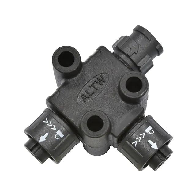 This is manufactured by Amphenol LTW. The manufacturer part number is AB-AD-050505-FFM-TQ001. It is assigned with possible HTSUS value of 8536.69.4020. The product is rohs compliant. It has conversion specifications from male pins. The product also features robust thermoplastic housing material. It comes in distributor t-shaped connector style. Furthermore, the product is shielded with unshielded. It has an integral black housing colour. It is shipped in bag. Its typical moisture sensitivity level is 1 (unlimited). Furthermore, push-pull is the Fastening Type of the product. It has a long 14 weeks standard lead time. Additionally, the product's output is 5a It is IP rated with ip68 - dust tight, waterproof. The splendid features of the product include coupling nut. The product is available in free hanging (in-line) configuration. The product x-lok, is a highly preferred choice for users. Can effectively be converted to female sockets (2). Moreover, it corresponds to ab-ad-050505, a base product number of the product. The product is designated with the ear99 code number
