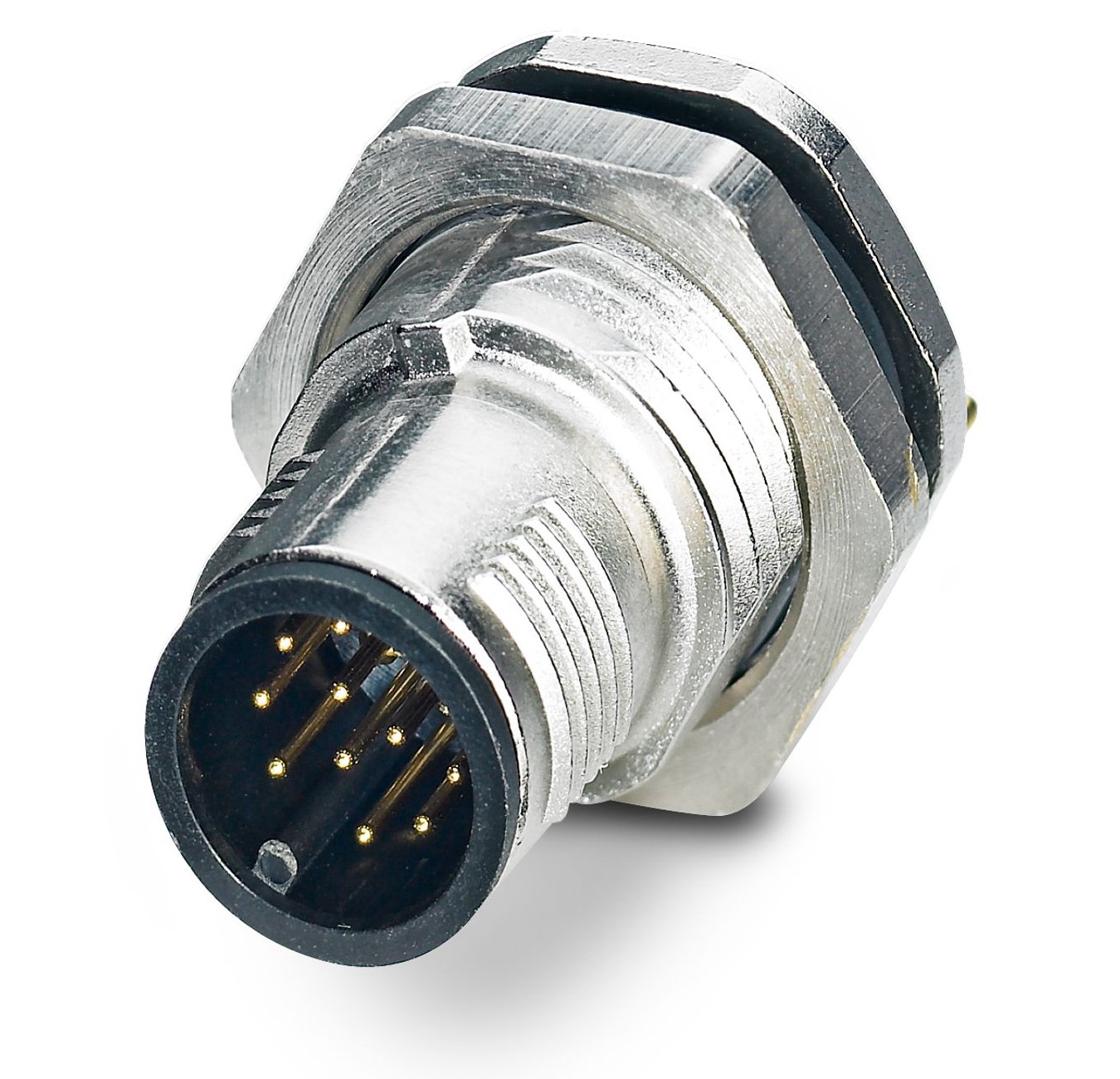 This is manufactured by Phoenix Contact. The manufacturer part number is 1441820. The product contains 12 contacts. It is assigned with possible HTSUS value of 8536.69.4020. The product is rohs compliant. The product's mounting feature includes bulkhead - front side nut. The product has -25°c ~ 85°c operating temperature range. The product carries possible position value of 12. It has nice contact finishing of gold. Moreover, the product has a nominal 30v voltage rating. Additionally, the product's output is 1.5a The basic product material is metal. It carries ul94 v-0 of material flammability rating. It is shipped in bulk. The insert's size is m12-12. plug, male pins Connector type offer robust functionality. Its typical moisture sensitivity level is 1 (unlimited). Furthermore, push-twist is the Fastening Type of the product. It is made from highly reliable zinc die cast materials. The product features solder termination style. It has a long 16 weeks standard lead time. While it is also supplied with highly stable polyamide (pa66), nylon 6/6 insert material. The product has a a orientation. It is IP rated with ip67 - dust tight, waterproof. The product is available in panel mount, through hole configuration. The shell is an excellent finishing of nickel. It has a classic silver colour. The product dsi, is a highly preferred choice for users. The product is made from sturdy copper zinc materials. The product is designated with the ear99 code number