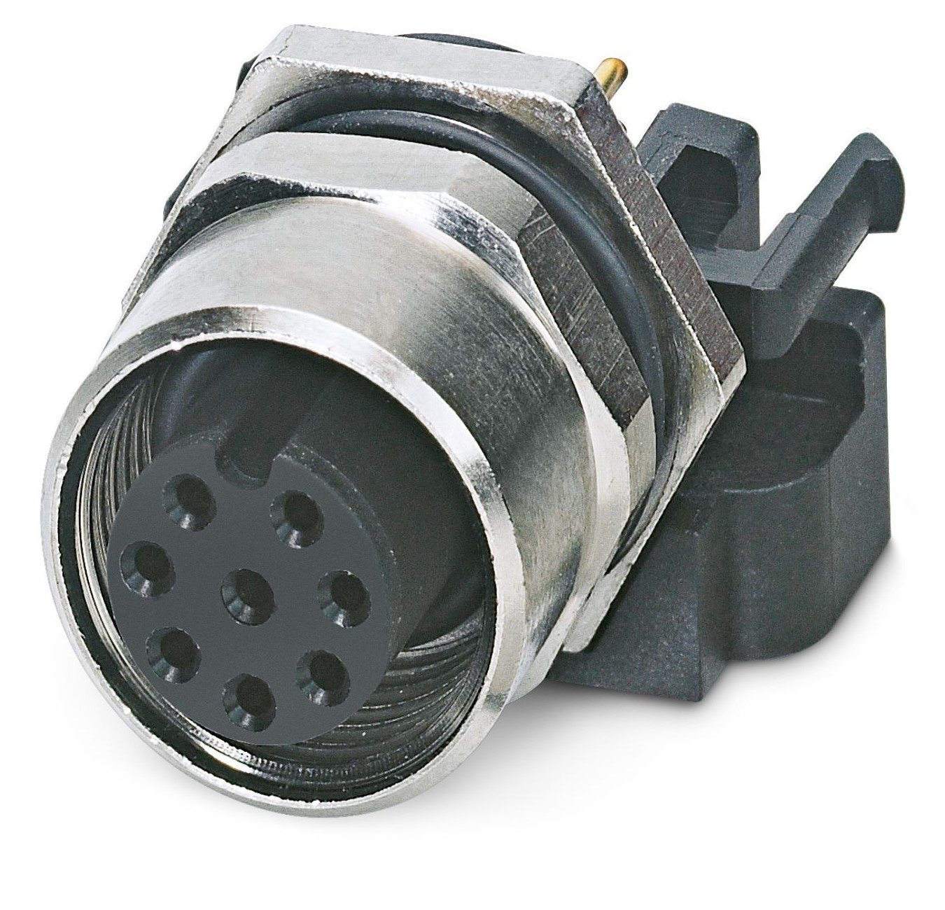 This is manufactured by Phoenix Contact. The manufacturer part number is 1556854. The product contains 8 contacts. It is assigned with possible HTSUS value of 8536.69.4020. The product is rohs compliant. The product's mounting feature includes bulkhead - rear side nut. The product has -25°c ~ 85°c operating temperature range. The product carries possible position value of 8. It has nice contact finishing of gold. Moreover, the product has a nominal 30v voltage rating. Additionally, the product's output is 2a The basic product material is metal. It carries ul94 hb of material flammability rating. It is shipped in bulk. The insert's size is m12-8. receptacle, female sockets Connector type offer robust functionality. Its typical moisture sensitivity level is 1 (unlimited). Furthermore, threaded is the Fastening Type of the product. It is made from highly reliable brass materials. The product features solder termination style. It has a long 29 weeks standard lead time. While it is also supplied with highly stable polyamide (pa66), nylon 6/6 insert material. The product has a a orientation. It is IP rated with ip67 - dust tight, waterproof. The splendid features of the product include board guide, board lock. The product is available in panel mount, through hole configuration. The shell is an excellent finishing of nickel. It has a classic silver colour. The product dsiv, is a highly preferred choice for users. The product is made from sturdy copper zinc materials. The product is designated with the ear99 code number