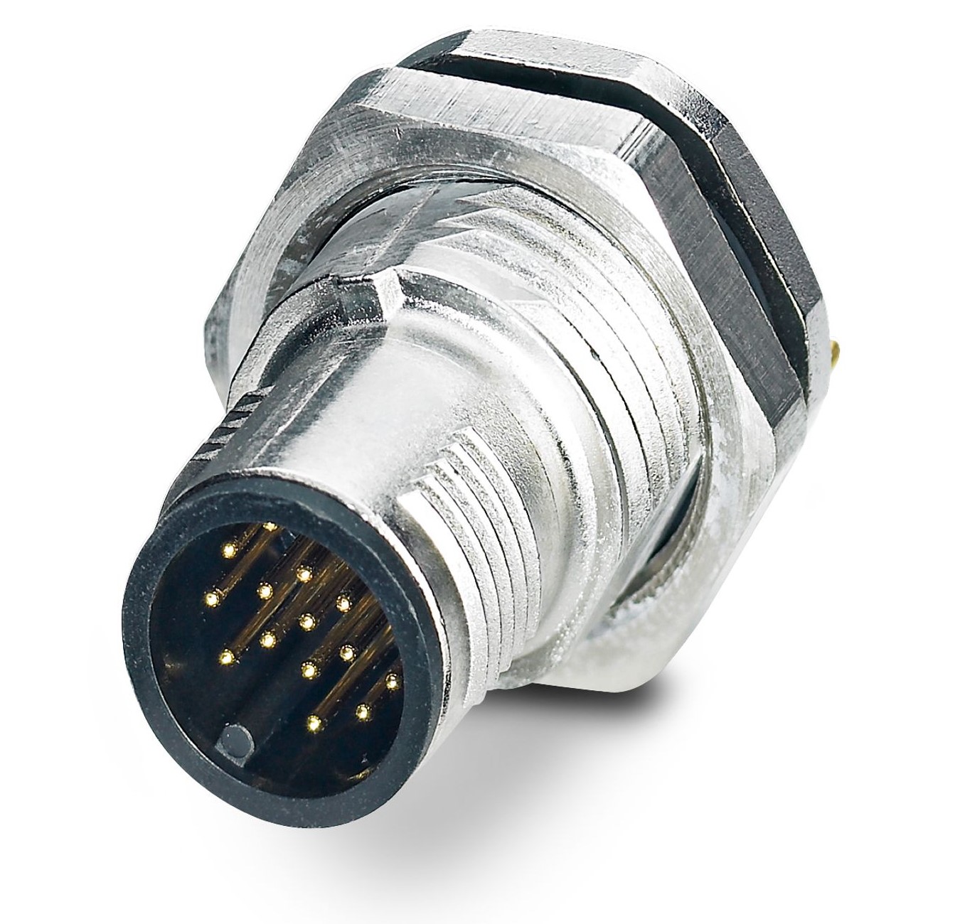 This is manufactured by Phoenix Contact. The manufacturer part number is 1441846. The product contains 17 contacts. It is assigned with possible HTSUS value of 8536.69.4020. The product is rohs compliant. The product's mounting feature includes bulkhead - front side nut. The product has -25°c ~ 85°c operating temperature range. The product carries possible position value of 17. It has nice contact finishing of gold. Moreover, the product has a nominal 30v voltage rating. Additionally, the product's output is 1.5a The basic product material is metal. It carries ul94 v-0 of material flammability rating. It is shipped in bulk. The insert's size is m12-17. plug, male pins Connector type offer robust functionality. Its typical moisture sensitivity level is 1 (unlimited). Furthermore, push-twist is the Fastening Type of the product. It is made from highly reliable zinc die cast materials. The product features solder termination style. It has a long 14 weeks standard lead time. While it is also supplied with highly stable polyamide (pa66), nylon 6/6 insert material. The product has a a orientation. It is IP rated with ip67 - dust tight, waterproof. The product is available in panel mount, through hole configuration. The shell is an excellent finishing of nickel. It has a classic silver colour. The product dsi, is a highly preferred choice for users. The product is made from sturdy copper zinc materials. The product is designated with the ear99 code number