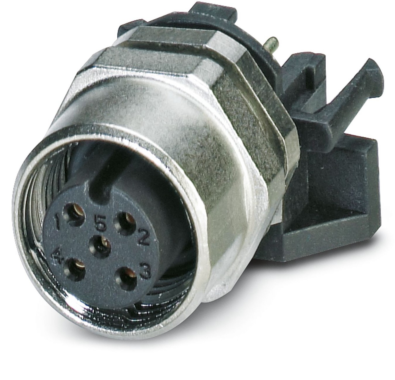 This is manufactured by Phoenix Contact. The manufacturer part number is 1542570. It is assigned with possible HTSUS value of 8536.69.4020. The product is rohs compliant. The product's mounting feature includes bulkhead - rear side nut. The product has -25°c ~ 85°c operating temperature range. The product carries possible position value of 5. It has nice contact finishing of gold. Moreover, the product has a nominal 60v voltage rating. Additionally, the product's output is 4a The basic product material is metal. It carries ul94 hb of material flammability rating. It is shipped in bulk. The insert's size is m12-5. receptacle, female sockets Connector type offer robust functionality. Its typical moisture sensitivity level is 1 (unlimited). Furthermore, push-twist is the Fastening Type of the product. It is made from highly reliable zinc die cast materials. The product features solder termination style. It has a long 22 weeks standard lead time. While it is also supplied with highly stable polyamide (pa66), nylon 6/6 insert material. The product has a a orientation. It is IP rated with ip67 - dust tight, waterproof. The splendid features of the product include board guide, board lock. The product is available in panel mount, through hole configuration. The shell is an excellent finishing of nickel. It has a classic silver colour. The product dsiv, is a highly preferred choice for users. The product is made from sturdy copper zinc materials. The product is designated with the ear99 code number