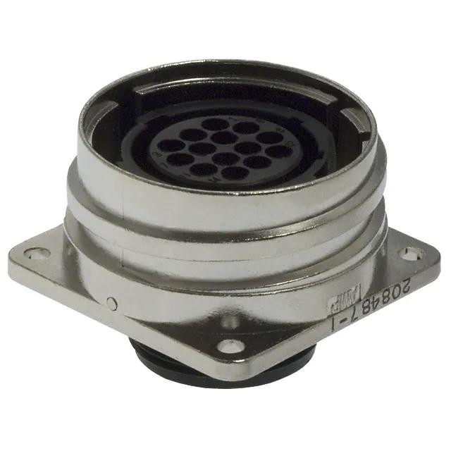 This is manufactured by TE Connectivity AMP Connectors. The manufacturer part number is 208487-1. It is assigned with possible HTSUS value of 8538.90.6000. The product is rohs compliant. The product's mounting feature includes flange. Note: contacts not included. The product has -55°c ~ 125°c operating temperature range. It comes in for female sockets configuration. The product carries possible position value of 14. Furthermore, the product is shielded with shielded. It is made from highly reliable zinc alloy materials. In addition, it is vendor undefined. It has an integral silver housing colour. It carries ul94 v-0 of material flammability rating. It has a typical circular shape. While it has a 16 of contact size. It is shipped in bulk. The insert's size is 22-14. receptacle housing Connector type offer robust functionality. Its typical moisture sensitivity level is 1 (unlimited). It has typical contact type of crimp. Furthermore, threaded is the Fastening Type of the product. While it is also supplied with highly stable thermoplastic insert material. The product has a keyed orientation. The product is available in panel mount configuration. The shell is an excellent finishing of nickel. The product cmc series 1, is a highly preferred choice for users. Moreover, it corresponds to 208487, a base product number of the product. The product is designated with the ear99 code number