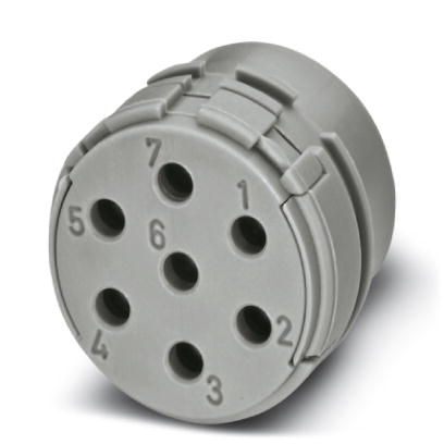 This is manufactured by Phoenix Contact. The manufacturer part number is 1594435. The product contains 7 contacts. It is assigned with possible HTSUS value of 8536.69.4020. The product is rohs compliant. Note: contacts not included; insert only, requires shell. It comes in for male pins configuration. The product carries possible position value of 7. Furthermore, the product is shielded with unshielded. It has a typical circular shape. While it has a 2.0mm of contact size. It is shipped in bulk. insert Connector type offer robust functionality. Its typical moisture sensitivity level is 1 (unlimited). It has typical contact type of crimp. It has a long 6 weeks standard lead time. While it is also supplied with highly stable polyamide (pa66), nylon 6/6 insert material. The product has a n (normal) orientation. The product rc, is a highly preferred choice for users. The product is designated with the ear99 code number