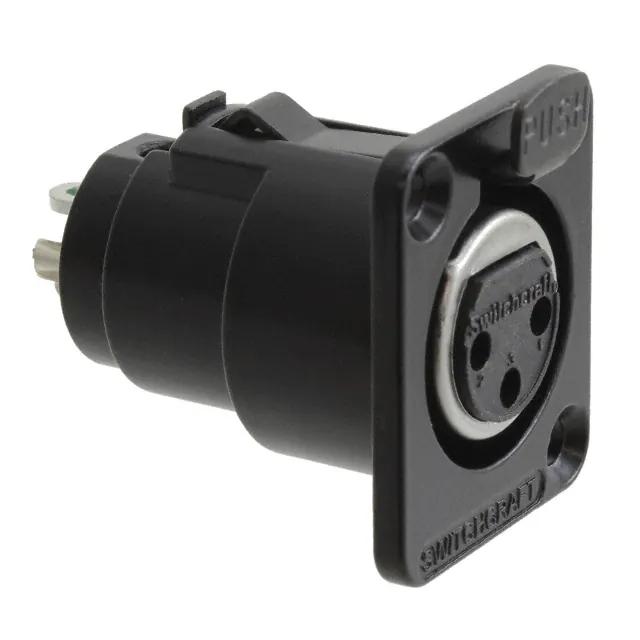 This is manufactured by Switchcraft Inc.. The manufacturer part number is DE3FB. It is assigned with possible HTSUS value of 8536.69.4020. The product is rohs3 compliant. The product's mounting feature includes flange. The product carries possible position value of 3. It has nice contact finishing of silver. It is made from highly reliable stainless steel materials. In addition, it is reach unaffected. The product is widely employed in audio, instrumentation. The basic product material is metal. It is shipped in bulk. The insert's size is xlr. plug, female sockets Connector type offer robust functionality. Its typical moisture sensitivity level is 1 (unlimited). Furthermore, latch lock is the Fastening Type of the product. The product features solder cup termination style. It has a long 26 weeks standard lead time. While it is also supplied with highly stable thermoplastic insert material. The product has a keyed orientation. The splendid features of the product include ground. The product is available in panel mount configuration. It has a classic black colour. The product de, is a highly preferred choice for users. The product is made from sturdy copper alloy materials. Moreover, it corresponds to de3f, a base product number of the product. The product is designated with the ear99 code number