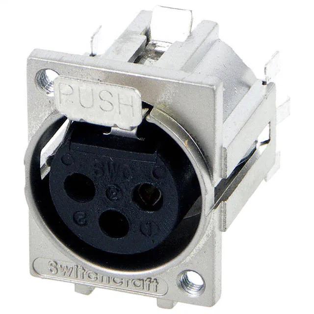 This is manufactured by Switchcraft Inc.. The manufacturer part number is F3FRAF. It is assigned with possible HTSUS value of 8536.69.4020. The product is rohs3 compliant. Moreover, the product has a nominal 133vac voltage rating. The product's mounting feature includes flange. The product has -55°c ~ 85°c operating temperature range. The product carries possible position value of 3. It has nice contact finishing of silver. Furthermore, the product is shielded with shielded. It is made from highly reliable zinc alloy materials. In addition, it is reach unaffected. Additionally, the product's output is 3a The basic product material is metal. It carries ul94 v-0 of material flammability rating. It is shipped in bulk. The insert's size is xlr. plug, female sockets Connector type offer robust functionality. Its typical moisture sensitivity level is not applicable. Furthermore, latch lock is the Fastening Type of the product. The product features solder termination style. It has a long 26 weeks standard lead time. While it is also supplied with highly stable thermoplastic insert material. The product has a keyed orientation. The splendid features of the product include board lock, ground. The product is available in panel mount, through hole, right angle configuration. The shell is an excellent finishing of nickel. It has a classic silver colour. The product q-g® f, is a highly preferred choice for users. The product is made from sturdy copper alloy materials. The product is designated with the ear99 code number