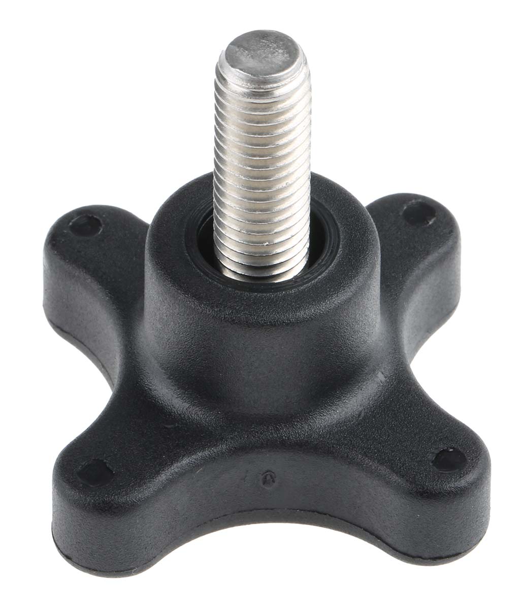 This is Black Thermoplastic Knob M10 x 25 manufactured by RS Pro. The manufacturer part number is 702-7746. The product is available in threaded stud configuration. Features a thread length of 25mm. While it is also supplied with highly stable stainless steel insert material.