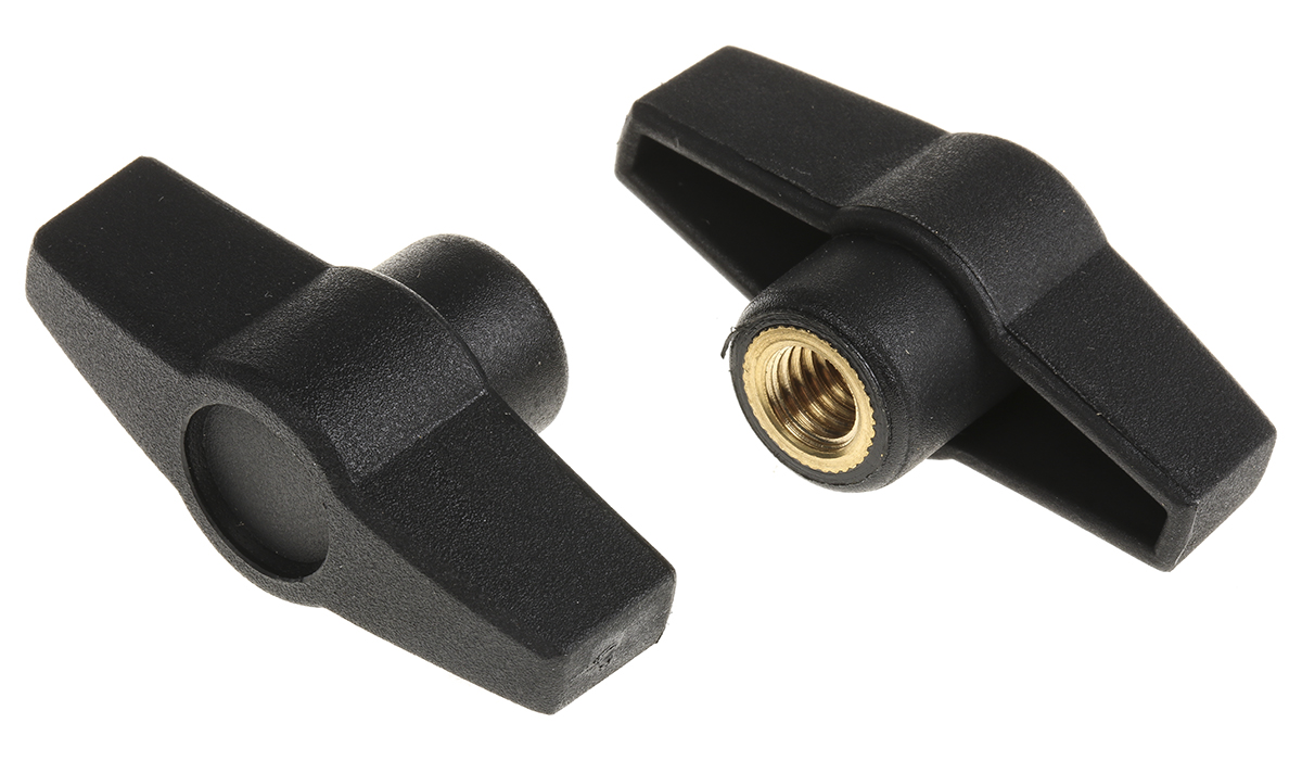 This is Black Thermoplastic Knob M8 x 12 manufactured by RS Pro. The manufacturer part number is 161-470. The product is available in threaded hole configuration. Features a thread length of 12mm. While it is also supplied with highly stable brass insert material.