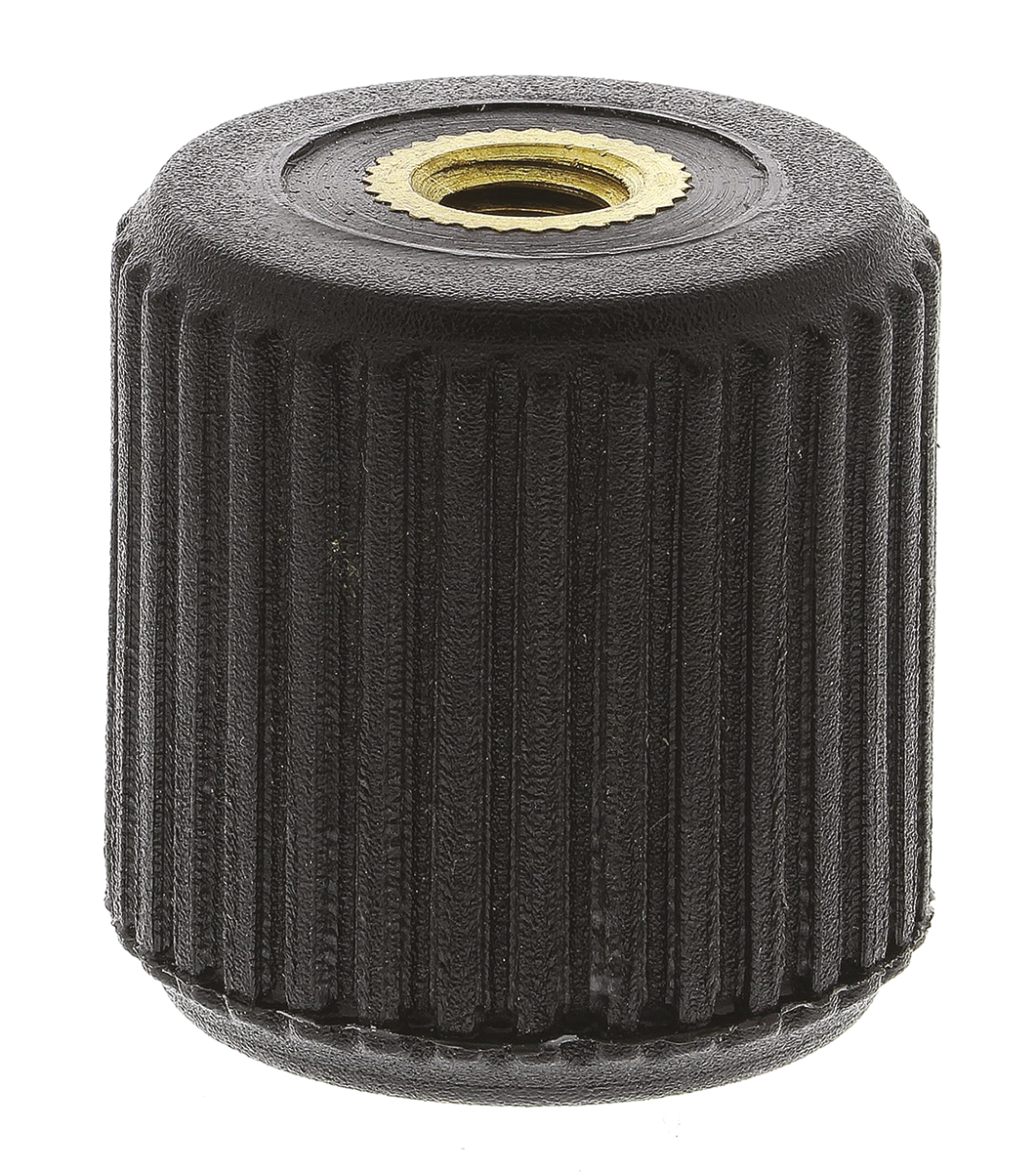 This is Black Thermoplastic Knob 685P manufactured by RS Pro. The manufacturer part number is 631-9108. The product is available in threaded hole configuration. While it is also supplied with highly stable brass insert material.