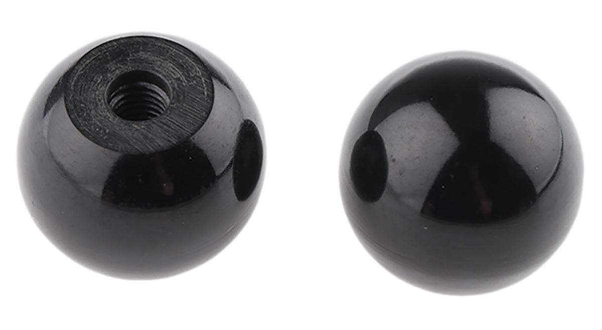 This is Black Duroplast Knob manufactured by RS Pro. The manufacturer part number is 686-020. The product is available in threaded hole configuration. Features a thread length of 23mm.