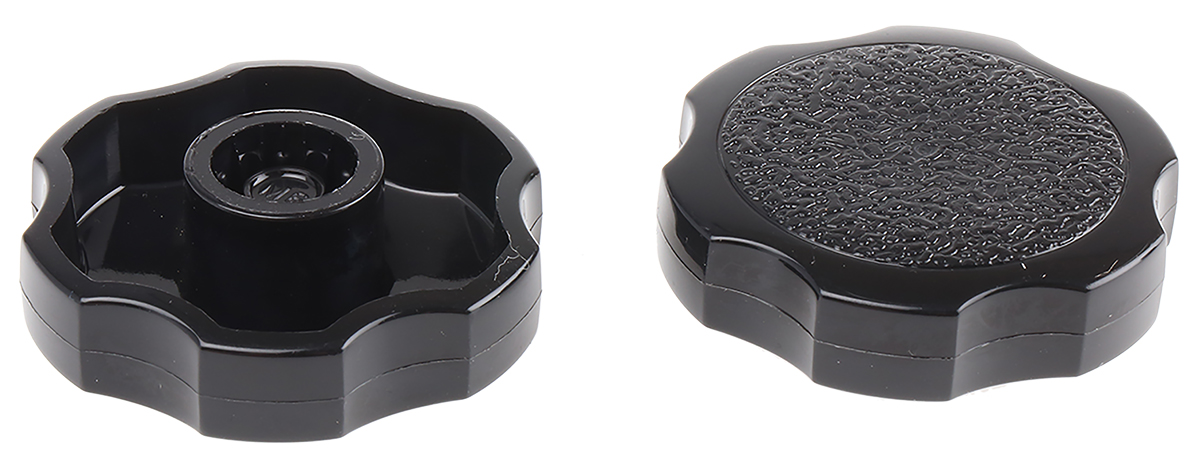 This is Black Thermoplastic Knob manufactured by RS Pro. The manufacturer part number is 771-718. The product is available in unthreaded hole configuration. Features a thread length of 12mm.