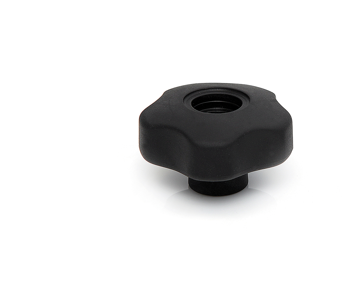 This is 60mm M10 Soft Touch Knob Through Thread manufactured by RS PRO. The manufacturer part number is 188-3465. The product is available in threaded through hole configuration. While it is also supplied with highly stable brass insert material.