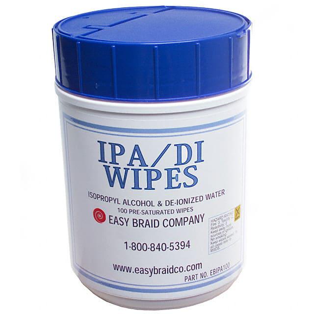 This is manufactured by MENDA/EasyBraid. The manufacturer part number is EBIPA100. It is assigned with possible HTSUS value of 6307.10.2030. It is shipped in canister. Specifications include pre-moistened. In addition, it is reach unaffected. The product's typical Applications include uses in multiple surfaces. Its typical moisture sensitivity level is not applicable. Available in 6 (100 ea) quantity. The product is designated with the ear99 code number
