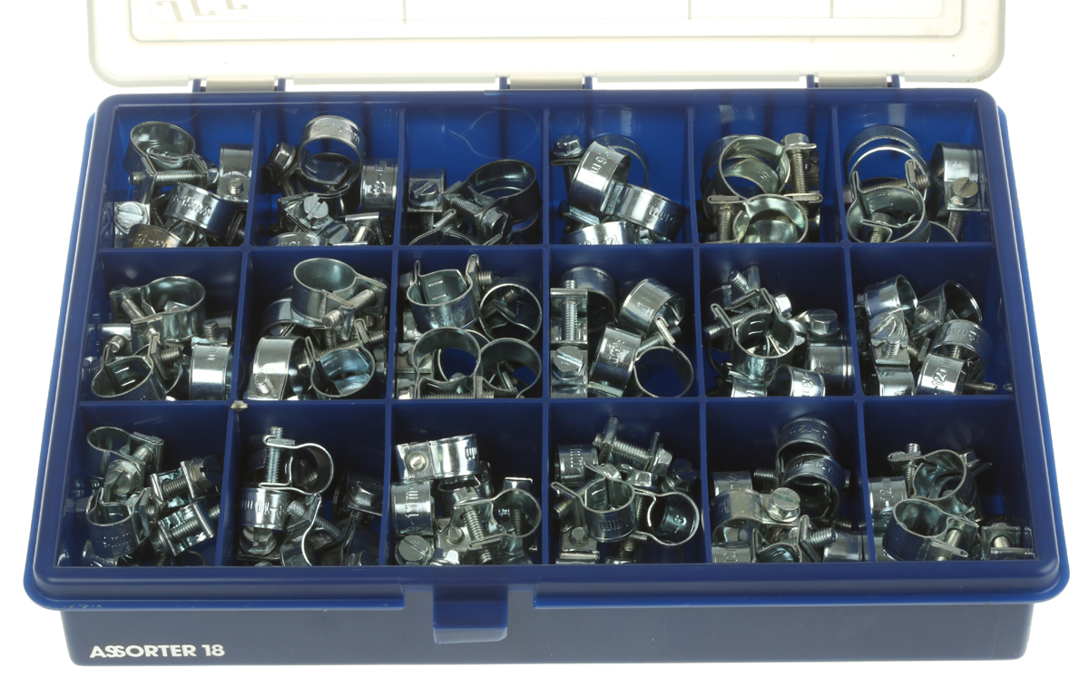 This is 157 Piece Steel Bolt Drive Hose Clip Kit 7 → 9mm and 16 → 18mm Inside Diameter manufactured by JCS Hi-Torque. The manufacturer part number is MCZAB1RS. The product is made from highly stable and reliable steel.