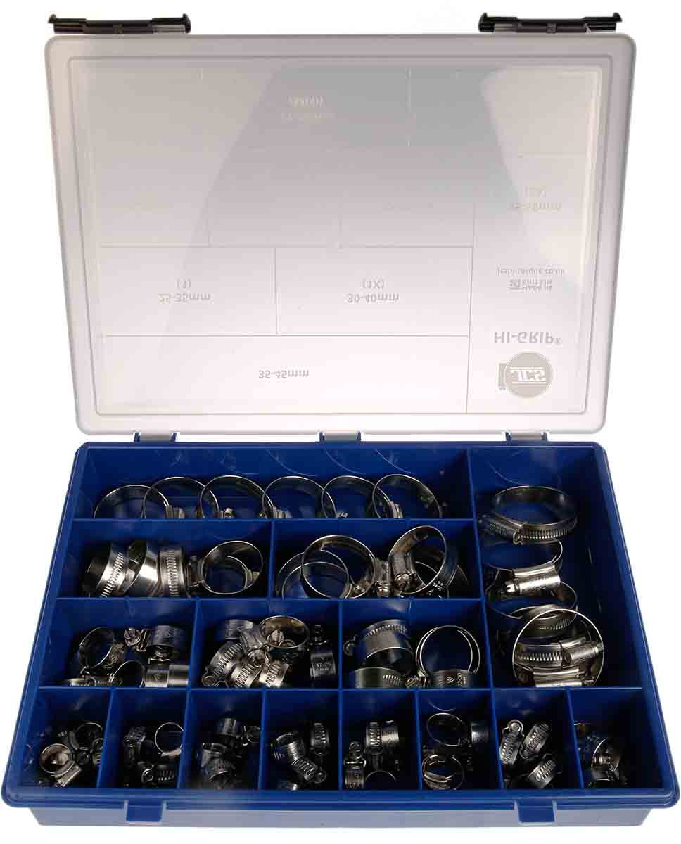 This is 76 Piece Stainless Steel Worm Drive Hose Clip Kit 9.5 → 12mm and 35 → 50mm Inside Diameter manufactured by HI-GRIP. The manufacturer part number is HGSAB2. The product is made from highly stable and reliable stainless steel.