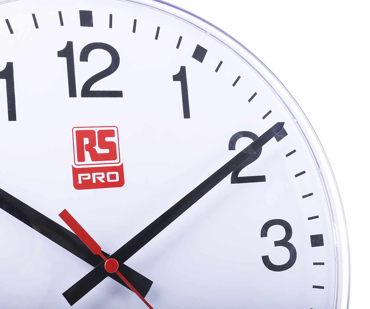 This is White Wall Clock 300mm manufactured by RS Pro. The manufacturer part number is 440-9568. Its diameter is 300mm. The typical product's weight is 490g. The product is made from highly stable and reliable plastic. The product comes in 40mm depth.