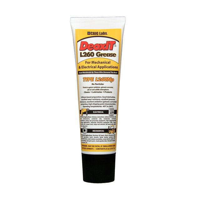 This is manufactured by CAIG Laboratories, Inc.. The manufacturer part number is L260-N8. It is assigned with possible HTSUS value of 3403.19.5000. The product is rohs compliant. The product is highly reliable with a long-lasting period of 60 months. It comes in lithium grease configuration. The product is designed as a nice jar, 7.972 oz (226g). In addition, it is reach unaffected. Its warranty starts from date of manufacture. It offers storage features at 59°f ~ 95°f (15°c ~ 35°c). It is shipped in tube. Its typical moisture sensitivity level is 1 (unlimited). It has a long 5 weeks standard lead time. The splendid features of the product include lubricant. It has a classic amber colour. The product deoxit®, is a highly preferred choice for users. Moreover, it corresponds to l260, a base product number of the product. The product is designated with the ear99 code number