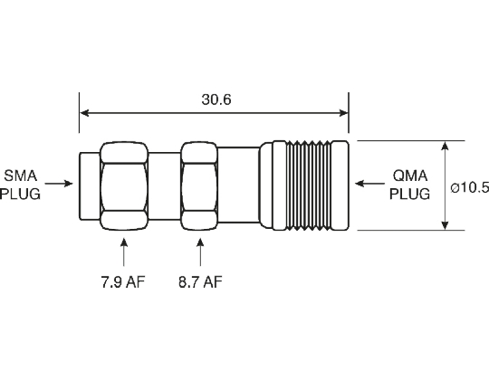 This is Straight 50Ω RF Adapter QMA Plug to SMA Plug 0 → 6GHz manufactured by TE Connectivity. The manufacturer part number is 1408393-1. Its accurate length is 30.6mm. It has an impedance value of 50ω. The product is made from sturdy beryllium copper materials.