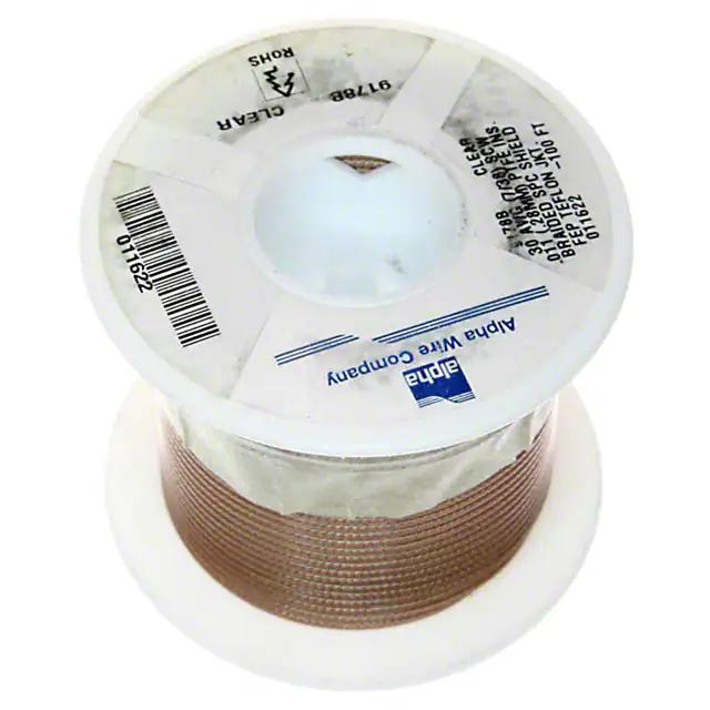 This is manufactured by Alpha Wire. The manufacturer part number is 9178B CL005. It is assigned with possible HTSUS value of 8544.20.0000. The product is rohs3 compliant. Its jacket is made from highly insulated fluorinated ethylene-propylene (fep) materials. It also features a 7 strands / 38 awg conductor strand. Moreover, the product is constructed from highly tetrafluoroethylene (tfe) dielectric material. In addition, it is reach unaffected. It has an impedance value of 50 ohms. Cable Group Options: rg-178b. It is shipped in spool. Moreover, the product has a wire gauge of 30 awg (0.06mm²). The item is shielded with a braid. Its typical moisture sensitivity level is 1 (unlimited). Its accurate length is 100.0' (30.48m). It has a long 26 weeks standard lead time. It covers shielding capability up to 96%. The diameter of the jacket is 0.071" (1.80mm). The conductor is made from steel, silver coated material. It is a typical coaxial cable. The product is shielded with a robust copper, silver coated shield materials. The product is designated with the ear99 code number Moreover, it corresponds to 9178b, a base product number of the product. It comes in nice natural colour.