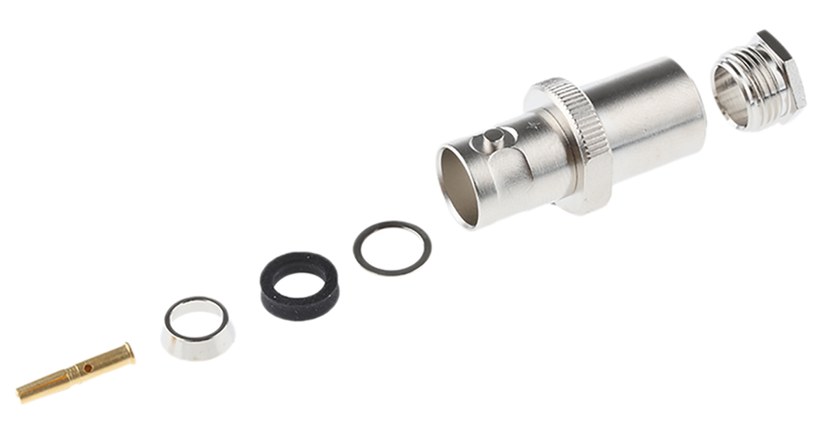 This is Straight 75Ω Cable Mount BNC Connector jack Clamp Termination RG59 B/U Nickel manufactured by Telegartner. The manufacturer part number is J01003A1227. The product is available in cable mount configuration. In addition, female is the available "Gender" of the product. It is a typical rg59 b/u cable. It has an impedance value of 75ω. It has a maximum operating temperature of +165°c. Whereas, the minimum operating temperature of the product is -65°c. The product is made from sturdy beryllium copper materials.