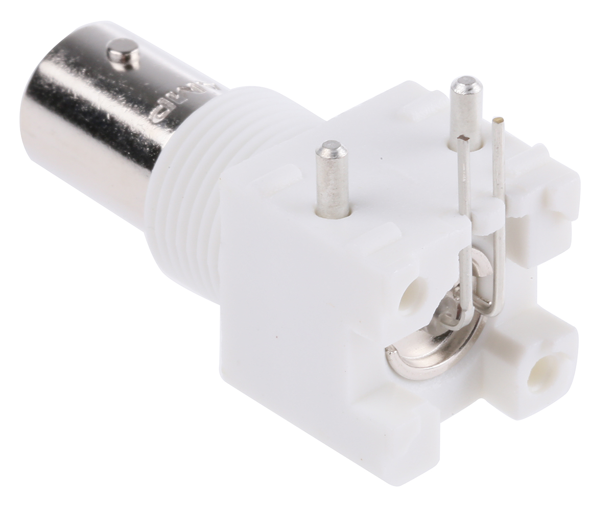 This is Right Angle 50Ω Through Hole BNC Connector jack Nickel Solder Termination manufactured by TE Connectivity. The manufacturer part number is 5227161-1. The product is available in pcb mount configuration. In addition, female is the available "Gender" of the product. It has an impedance value of 50ω. It has a maximum operating temperature of +85°c. Whereas, the minimum operating temperature of the product is -55°c. The product is made from sturdy phosphor bronze materials.