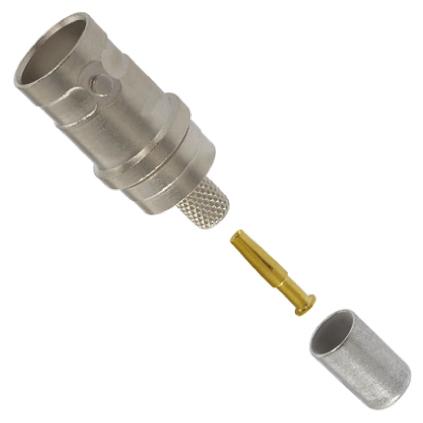 This is Straight 50Ω Cable Mount BNC Connector jack Nickel Crimp Termination manufactured by TE Connectivity. The manufacturer part number is 5225396-1. The product is available in cable mount configuration. In addition, female is the available "Gender" of the product. It is a typical rg58 a/u, rg58 b/u, rg58 c/u, rg58/u cable. It has an impedance value of 50ω. The product is made from sturdy beryllium copper materials. The product is available in standard size.
