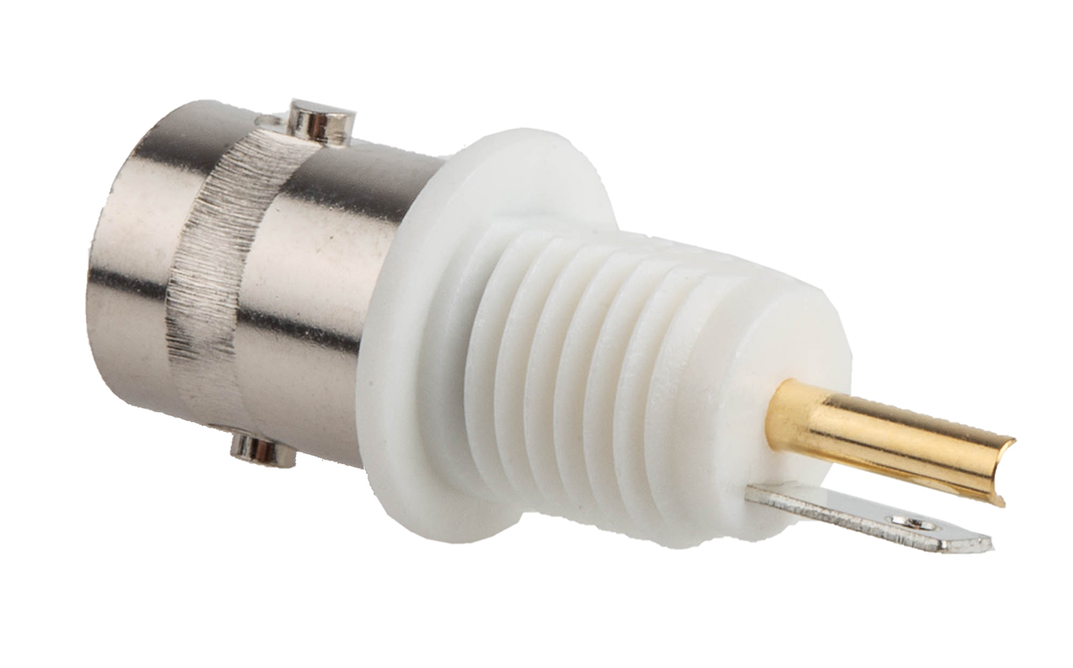 This is Straight 75Ω Panel Mount Bulkhead Fitting BNC Connector jack Nickel Solder Termination manufactured by RS Pro. The manufacturer part number is 546-3995. The product is available in panel mount configuration. In addition, female is the available "Gender" of the product. It has an impedance value of 75ω. The product is made from sturdy brass materials.