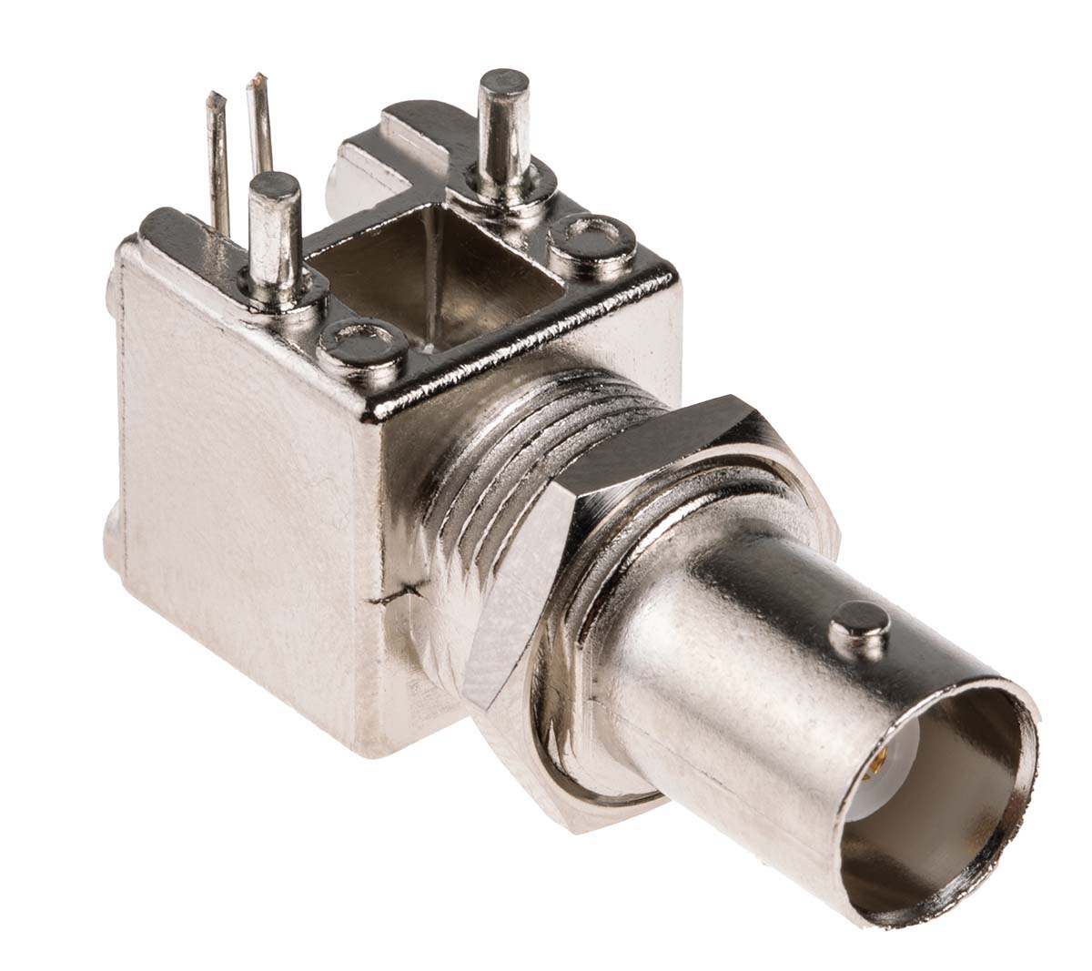This is Right Angle 50Ω PCB Mount BNC Connector jack Nickel Solder Termination manufactured by RS Pro. The manufacturer part number is 546-5137. The product is available in pcb mount configuration. In addition, female is the available "Gender" of the product. It has an impedance value of 50ω. The product is made from sturdy phosphor bronze materials.