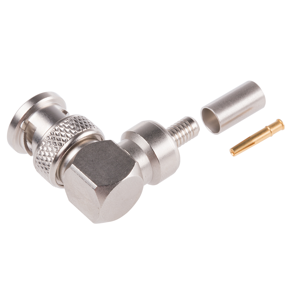 This is Right Angle 50Ω Cable Mount BNC Connector Plug Nickel Crimp Termination RG141 RG58 manufactured by Radiall. The manufacturer part number is R141182000W. The product is available in cable mount configuration. In addition, male is the available "Gender" of the product. It is a typical rg141, rg58 cable. It has an impedance value of 50ω. It has a maximum operating temperature of +165°c. Whereas, the minimum operating temperature of the product is -65°c. The product is made from sturdy brass materials.