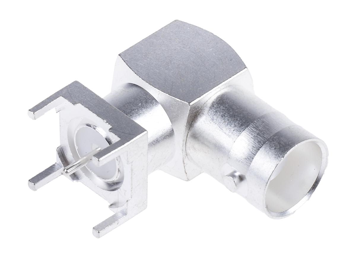 This is Right Angle 50Ω PCB Mount BNC Connector jack Silver Solder Termination manufactured by RS Pro. The manufacturer part number is 546-4516. The product is available in pcb mount configuration. In addition, female is the available "Gender" of the product. It has an impedance value of 50ω. The product is made from sturdy copper materials.